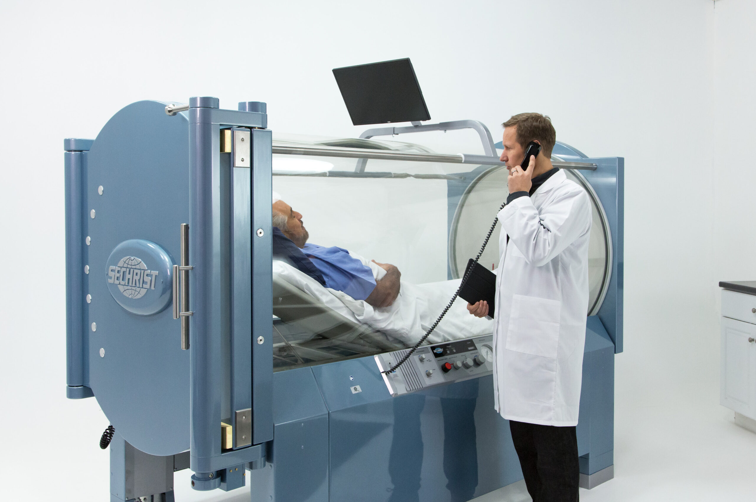 At the Gladstone Clinic Hyperbarics, we have top of the line Sechrist hard shell mono chambers. We have TV entertainment attached to the chambers so that you can have a comfortable and relaxing treatment.